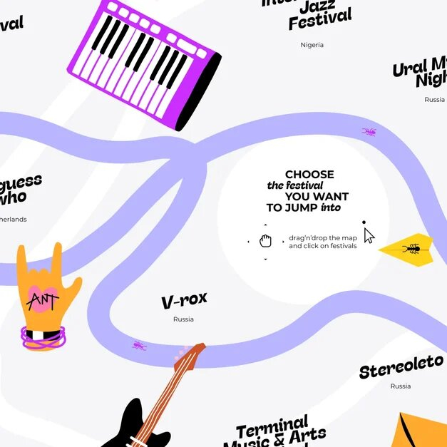 До декабря на сайте проекта можно прогуляться по карте фестивалей, поддержать их донатом, приобрести мерч, посмотреть видео с муравьями, которые танцуют, ликуют и отдыхают на мини-копиях сцен всех 11 участников проекта.