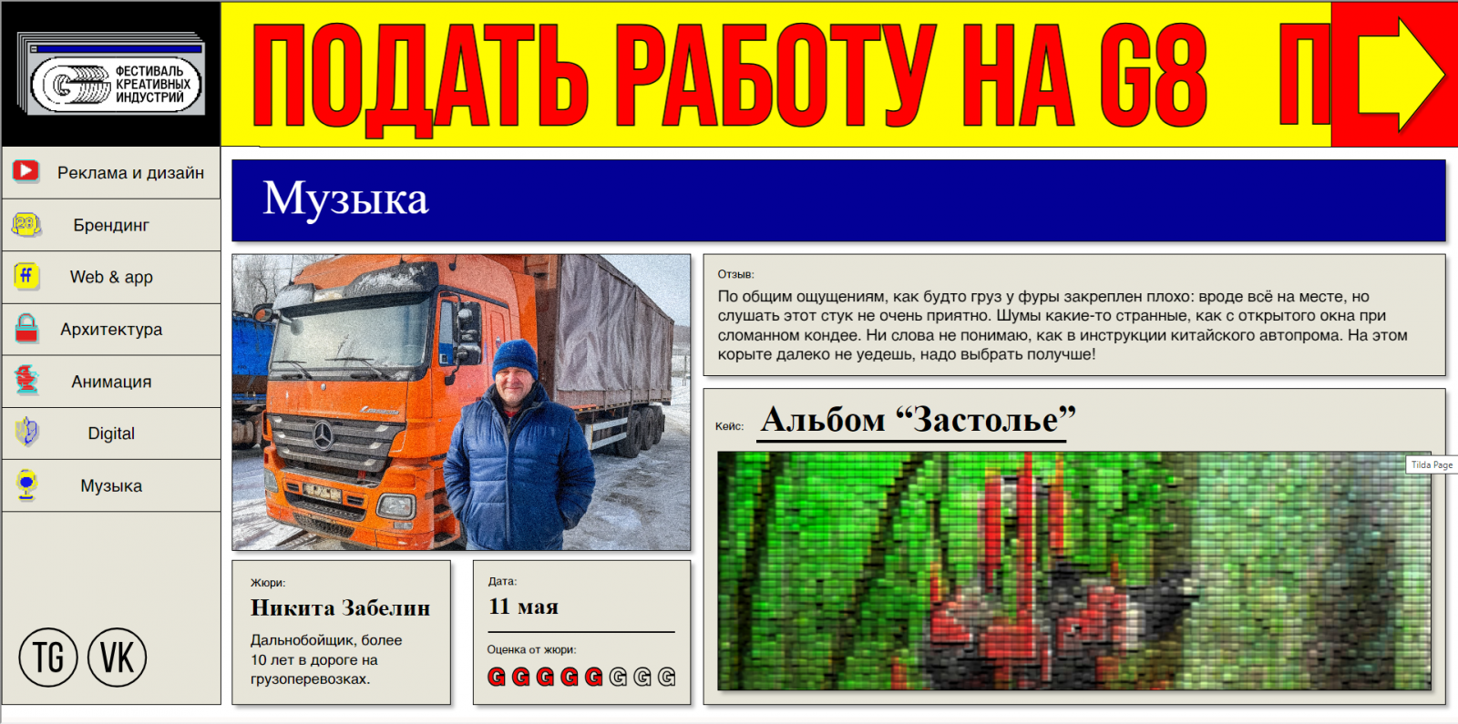 Ранее агентство «Восход» предложило зрителям участие в выборе нужной буквы G в рекламе конкурса G8 Creative Awards, предоставив возможность оценить концепты и решить, что «Great», а что «Garbage».