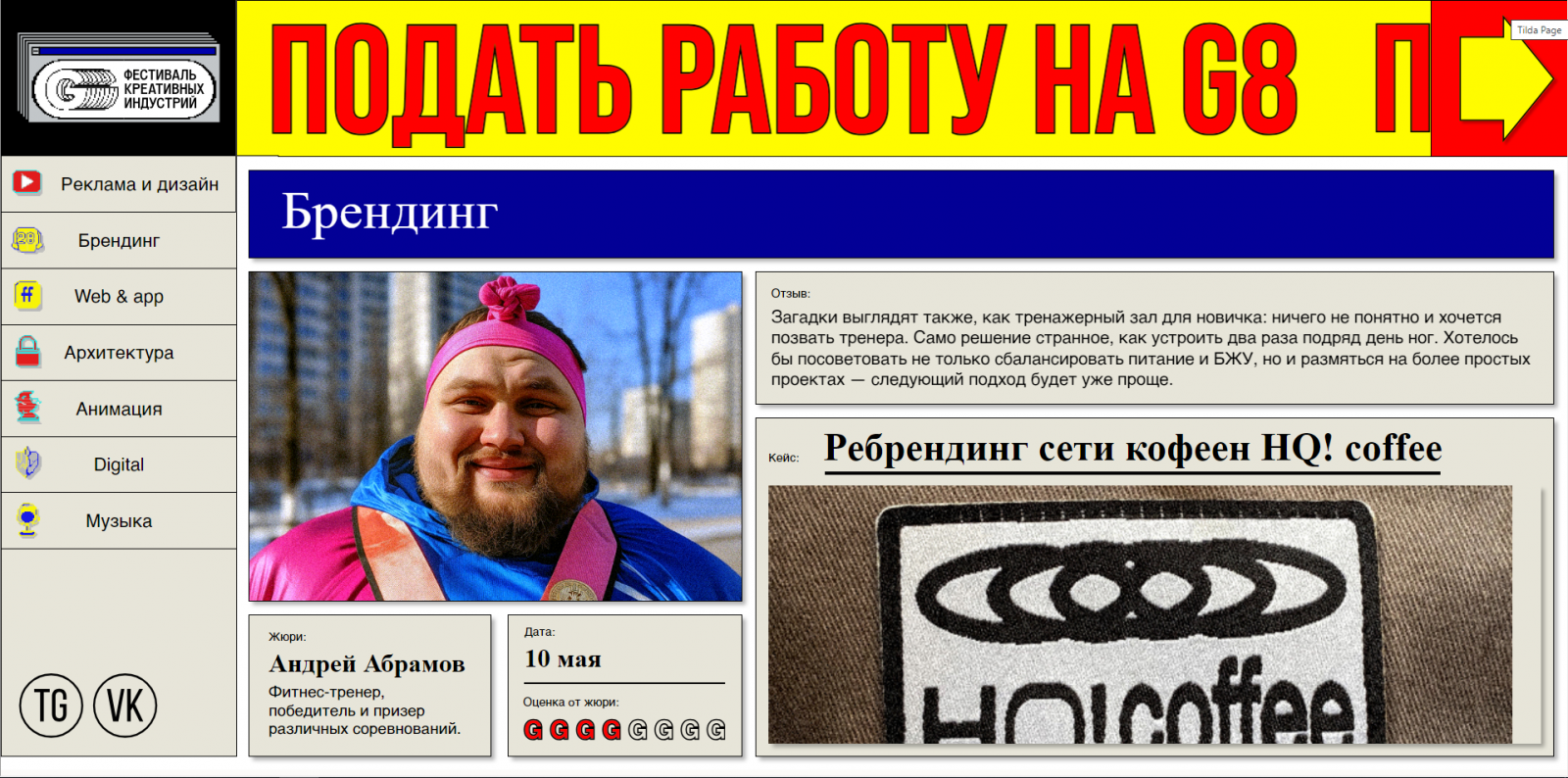 G8 Creative Awards 2024 и рекламное агентство «Восход» представляют новую рекламную кампанию, запустив сайт, на котором оценки членов жюри конкурса сравниваются с мнением мастерами своего дела из повседневной жизни. Среди профессий можно найти психотерапевта, стоматолога, дальнобойщика, сантехника, фитнес-тренера, пластического хирурга и даже компьютерного мастера.