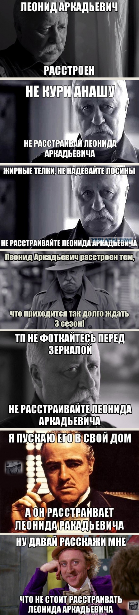 Образ печального Якубовича моментально превратился в популярнейший мем - на тему «Леонид Аркадьевич расстроен» в интернете появились десятки фотожаб и сотни приколов. Известного телеведущего «расстраивало» все – и опущенное сиденье унитаза, и непрошеные гости, и даже полные девушки в ласинах.