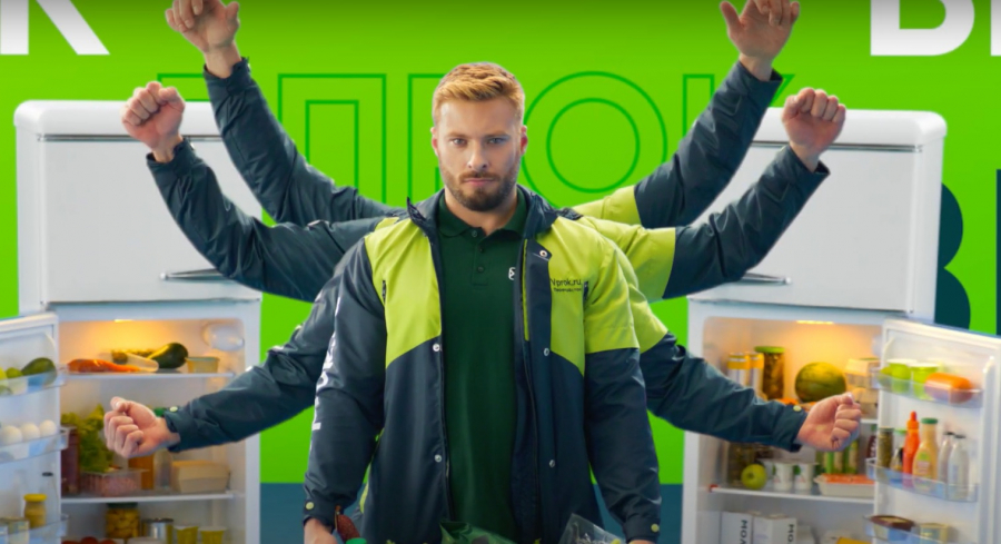 Для нас ТВ — ключевой канал коммуникации: в эконометрике мы видим чёткую зависимость между объёмом ТВ и количеством скачиваний нашего приложения. Мы выбрали spike-стратегию, когда на короткий период времени важно «прорвать» клаттер ярким нестандартным сообщением с многоруким курьером-Шивой, размноженными грузовиками и лестницей из ящиков с продуктами. В ролике очень много брендинга и это сделано сознательно, чтобы сделать «впрок» нарицательным именем для категории больших закупок.