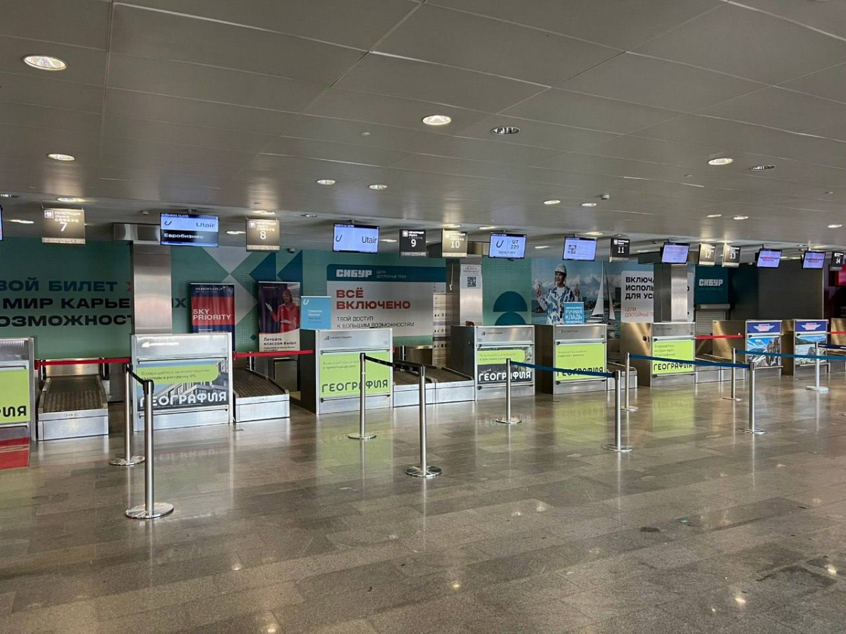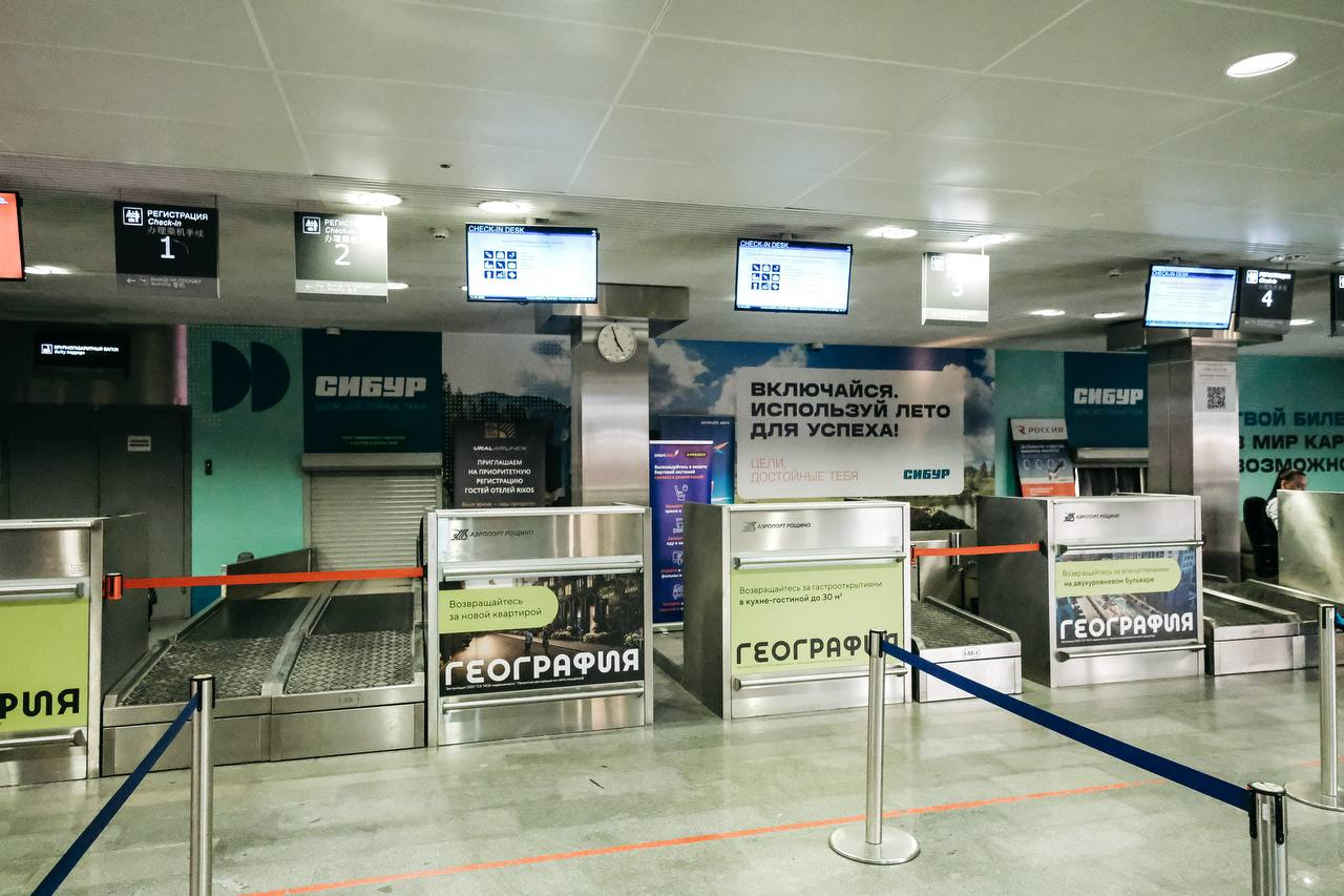В тюменском аэропорту «Рощино», забрендировали 35 метровую стену за стойками регистрации.