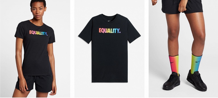 Спортивный бренд Nike решил поддержать ЛГБТ-сообщество и выпустил радужную коллекцию одежды Be True. Футболки с надписью «Равенство», яркие кроссовки, цветные носки и розовый цвет.