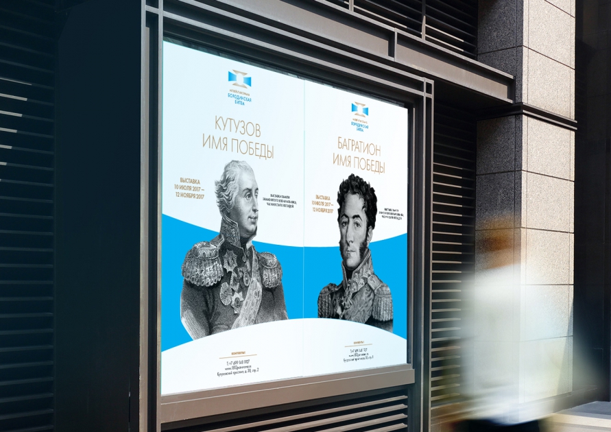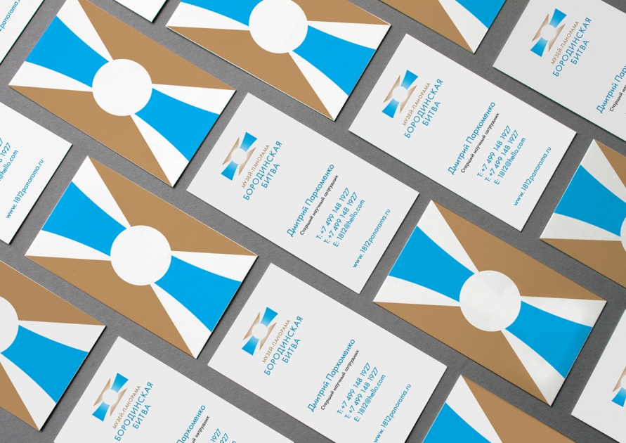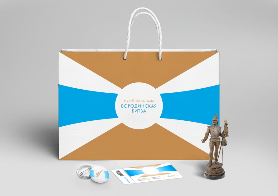 Другой пример — работа Charsky studio над брендом музейного комплекса «Бородинская битва». При всей ориентации на молодую целевую аудиторию в каждой детали фирменного стиля мы напоминаем об эпохе 1812 года. Форма знака напоминает ордена того времени, на различных носителях айдентики появляются фрагменты исторической панорамы и изображения других музейных экспонатов. Тексты с выключкой по центру апеллируют к стилистике документов XIX века.