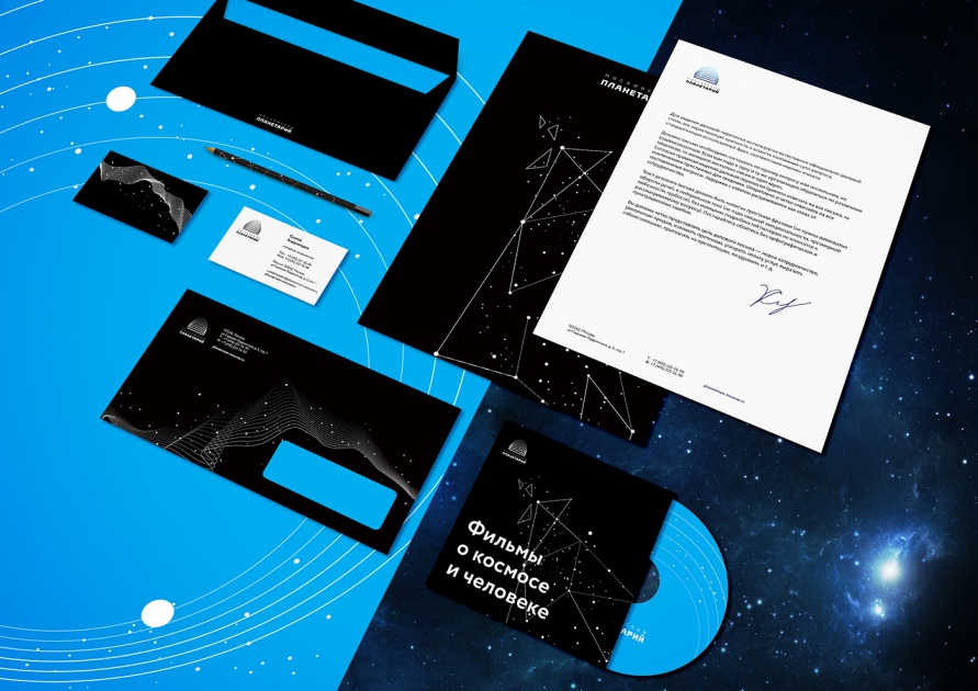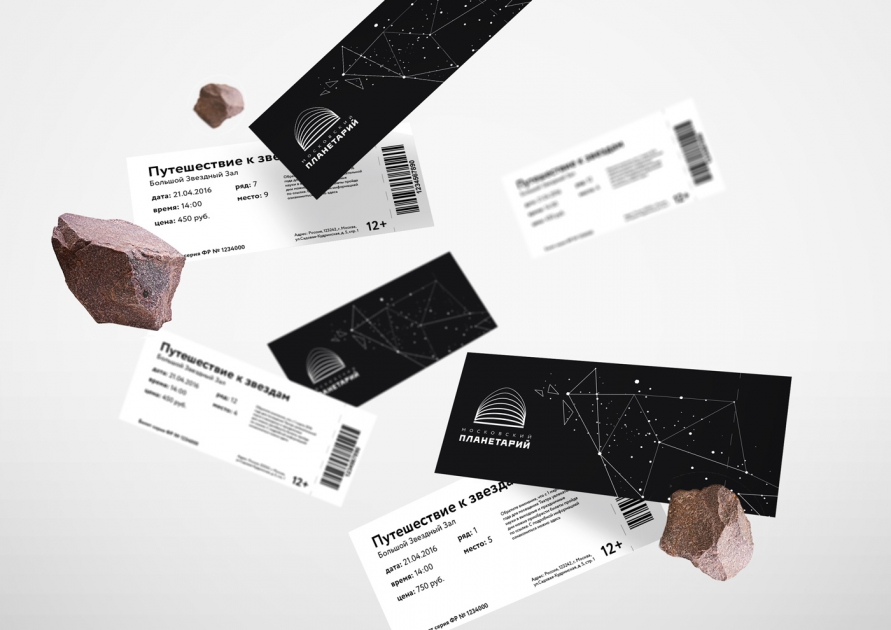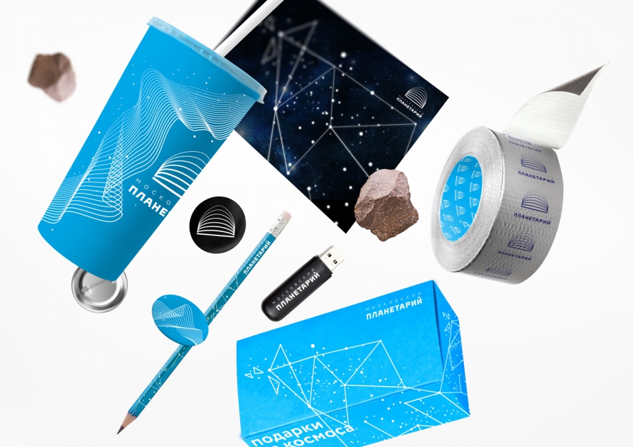 Еще один кейс — на этот раз от Charsky studio — айдентика Московского Планетария. Живая, легко трансформируемая для самых разных форматов, в том числе для проекционных изображений, с простым и современным логотипом, который говорит о том, что можно путешествовать в космос и оставаясь на Земле.