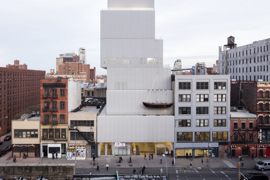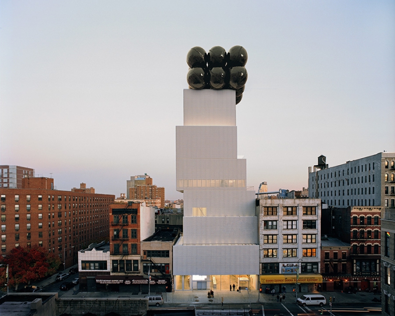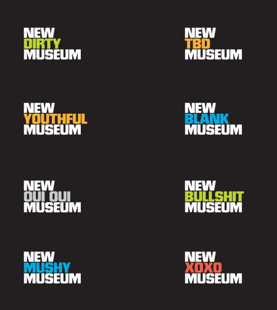 New Museum «играет» в коммуникациях со знаковой формой своего здания, которое стало центральным элементом его айдентики. Презентация новых выставок анонсируется на самом здании неожиданным образом (в духе современного искусства).