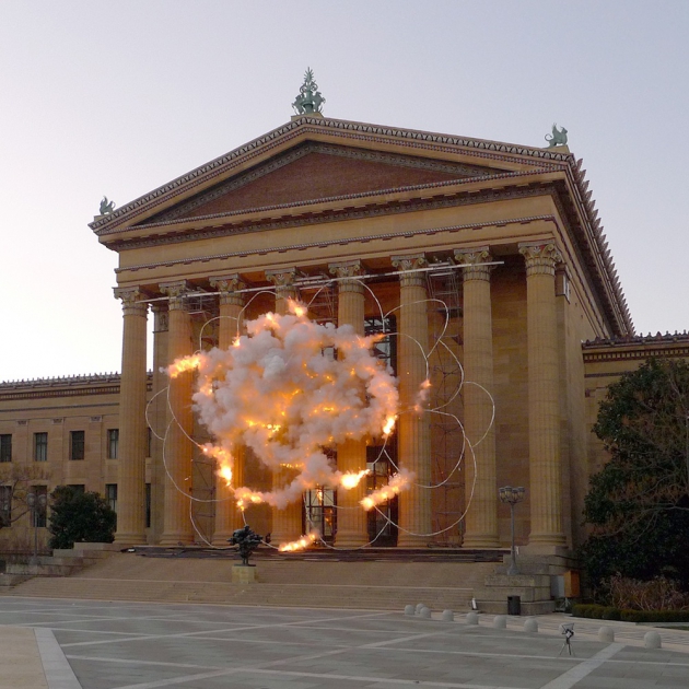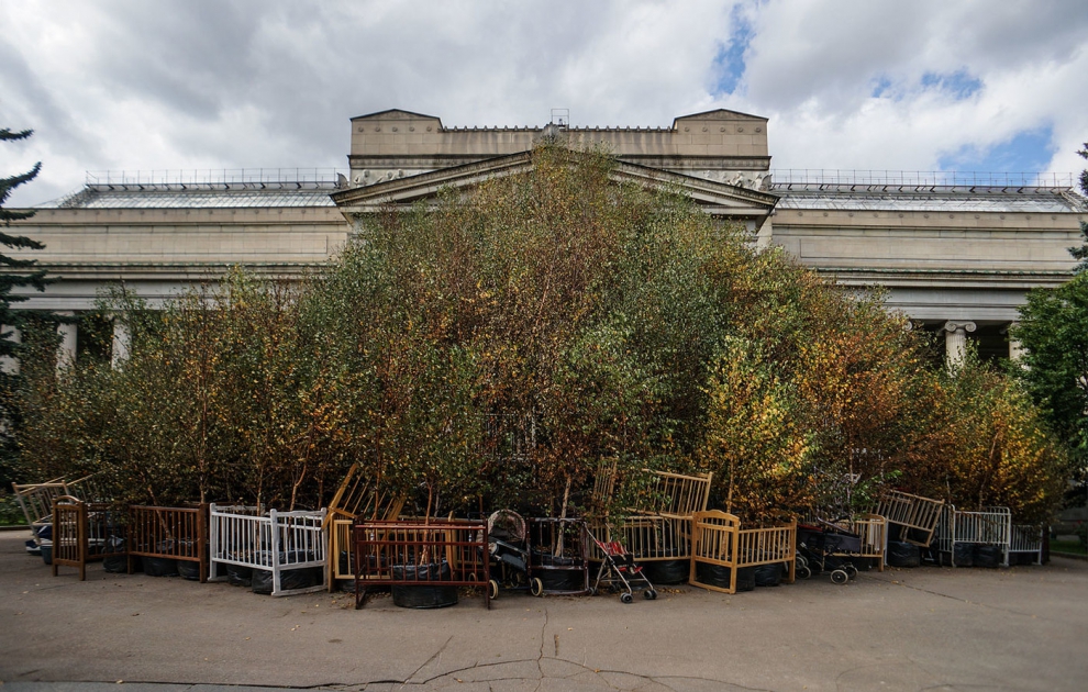 А это выставка «Октябрь» китайского художника Цая Гоцяна, открытая перед главным входом в Государственный музей изобразительных искусств им. А. С. Пушкина к столетию Революции. Кажется всю осень все только и делали, что постили фотографии оттуда.