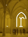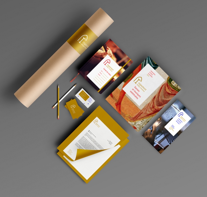Вот, к примеру, айдентика Аббатства Руана — бывшего Цистерцианского монастыря, построенного в XII веке, превратившегося в историческую достопримечательность, выставочное пространство и концертную площадку. Дань векам здесь отдает знак, символически напоминающий об архитектуре аббатства, а развитие стиля — на контрасте — очень современное и динамичное.