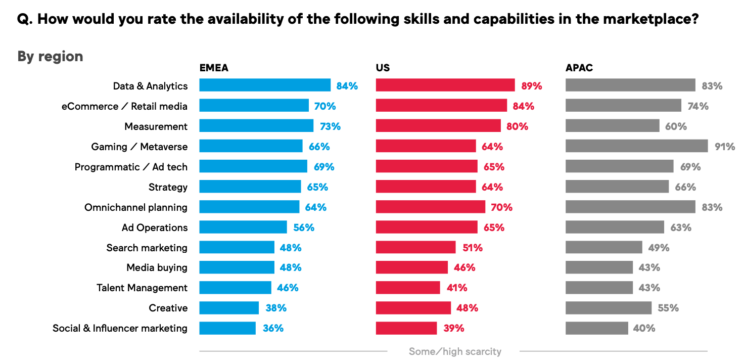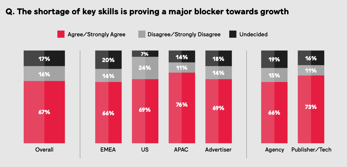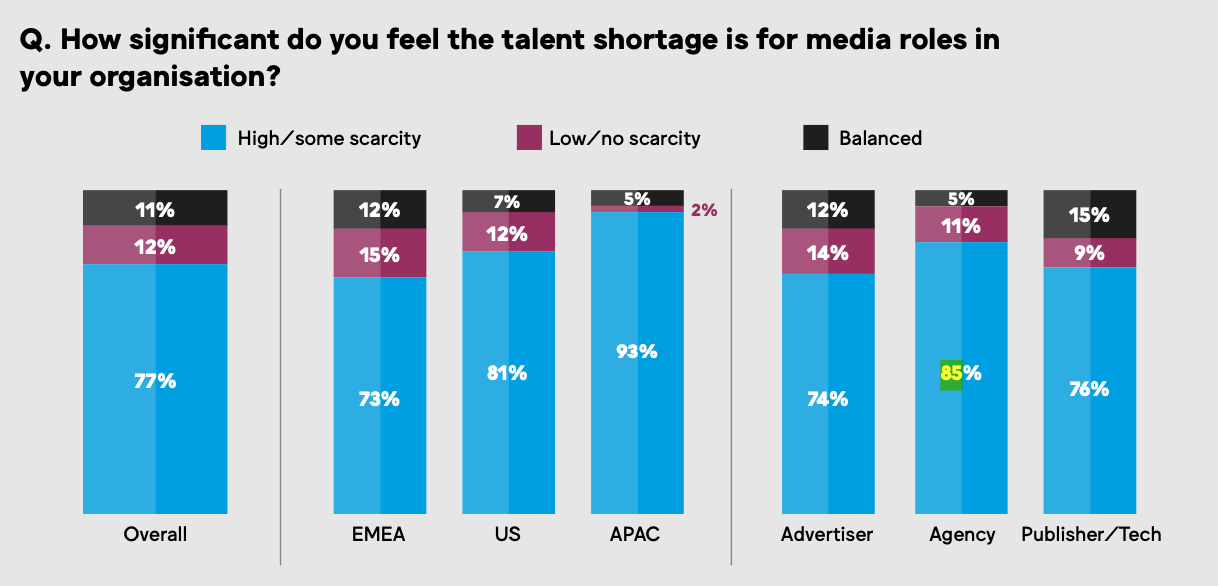 Согласно исследованию Media’s got talent? Всемирной федерации рекламодателей (World Federation of Advertisers, WFA) и MediaSense, почти половина (48%) всех рекламодателей, агентств, компаний, занимающихся рекламными технологиями, владельцев СМИ считают, что отрасль переживает «худший в истории» кадровый кризис. Отчёт опубликован на сайте WFA.