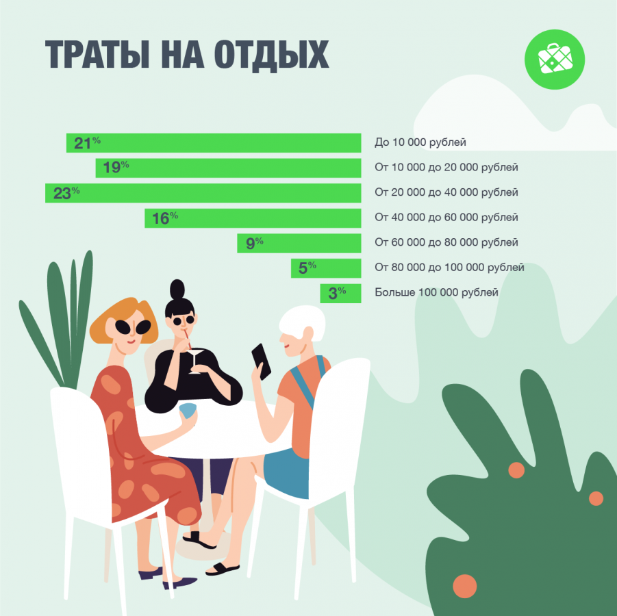 Больше половины респондентов предпочитают отдых с семьей. 39% отправляются в путешествия с друзьями, 38% - со второй половиной, а практически каждый четвертый путешествует в одиночку. Треть россиян добирались до места отдыха на автомобиле и на поезде. Самолетом воспользовались 17%, автобусом — 16%. Более трети путешественников останавливались у друзей или родственников, каждый пятый предпочел гостиницу, 15% снимали квартиру.