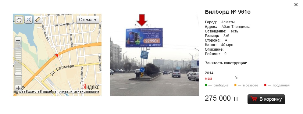 Преимущество работы с сайтом заключается в прозрачности финасовых условий ( цены аренды конструкций обозначены на сайте) и надежности, которую гарантирует старейшая в Средней Азии компания, специализирующаяся сугубо на наружной рекламе.