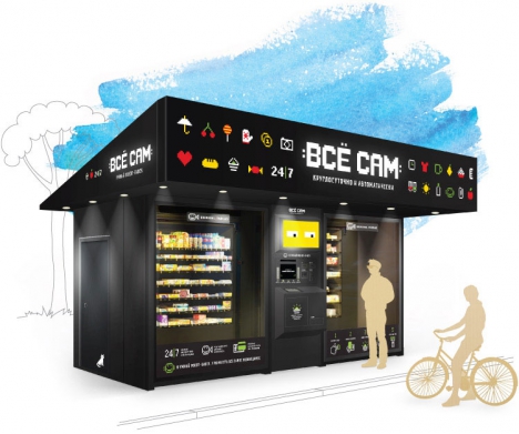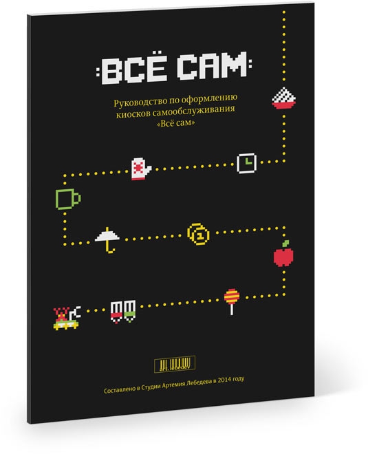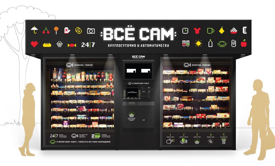 Студия Артемия Лебедева завершила комплексную работу для ритейл-проекта «Всё сам», представляющего собой круглосуточные киоски самообслуживания, где продаются продукты, напитки и наиболее востребованные потребительские товары.