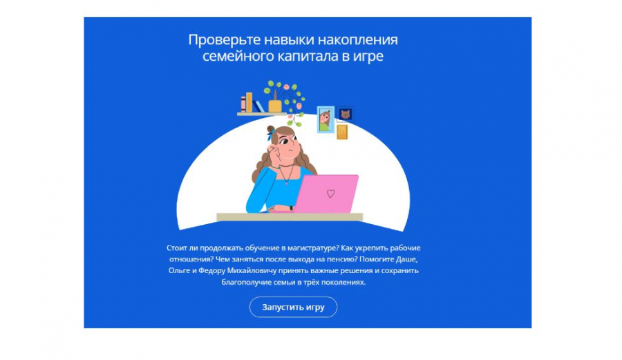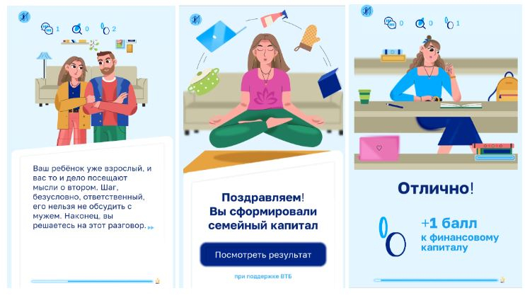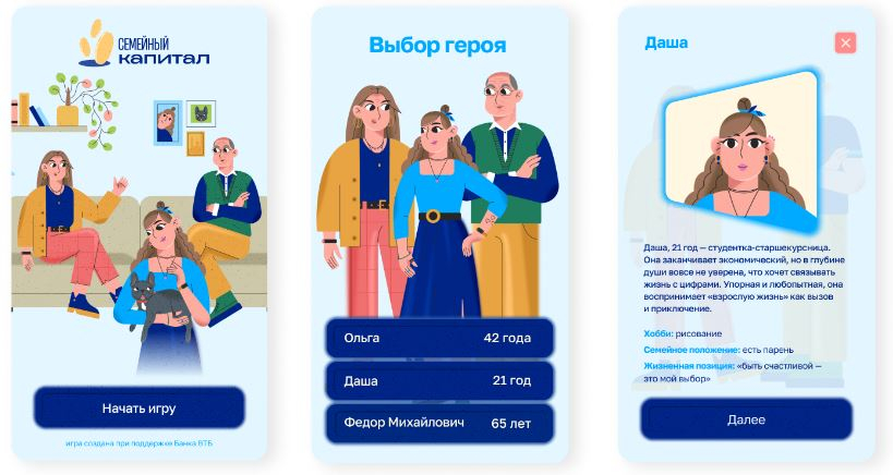 Семейный капитал зависит как от навыков распоряжаться деньгами, так и от отношений внутри семьи, наличия традиций, умения поддерживать начинания других и многого другого. Поэтому молодую аудиторию с концепцией семейного капитала решили познакомить с помощью анимационной игры в жанре «визуальная новелла», размещённой во «ВКонтакте».
