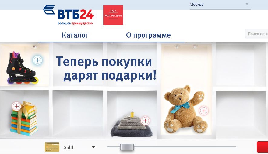 ВТБ24 запустил собственную программу лояльности «Коллекция» для держателей пластиковых карт банка. Участники проекта смогут получать бонусы за транзакции и специальные акции, а также обменивать их на вознаграждения из каталога программы.