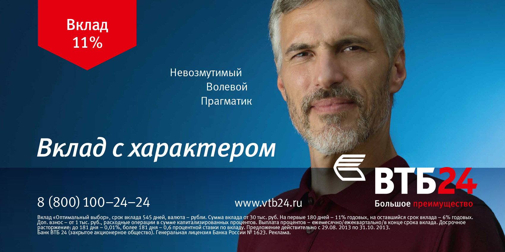 ВТБ24 совместно с креативным агентством MILK представил новую рекламную кампанию по оптимизации депозитной линейки банка. На российском телевидении ролик, посвященный вкладу «ВТБ24 – Оптимальный выбор», запущен сегодня, 3 сентября.