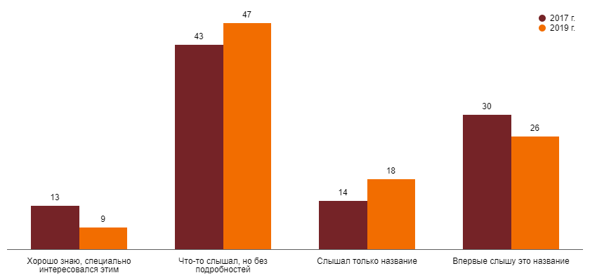 Более половины россиян (56%) заявляют, что знают о биткойнах (однако, в подробностях — только 9%), еще 18% слышали только сам термин. Заметно выше уровень информированности среди представителей самых молодых возрастных групп (67% среди 18−24-летних), людей с высшим образованием (71%), жителей Москвы и Санкт-Петербурга (75%), мужчин (66%), активных интернет-пользователей (69%).