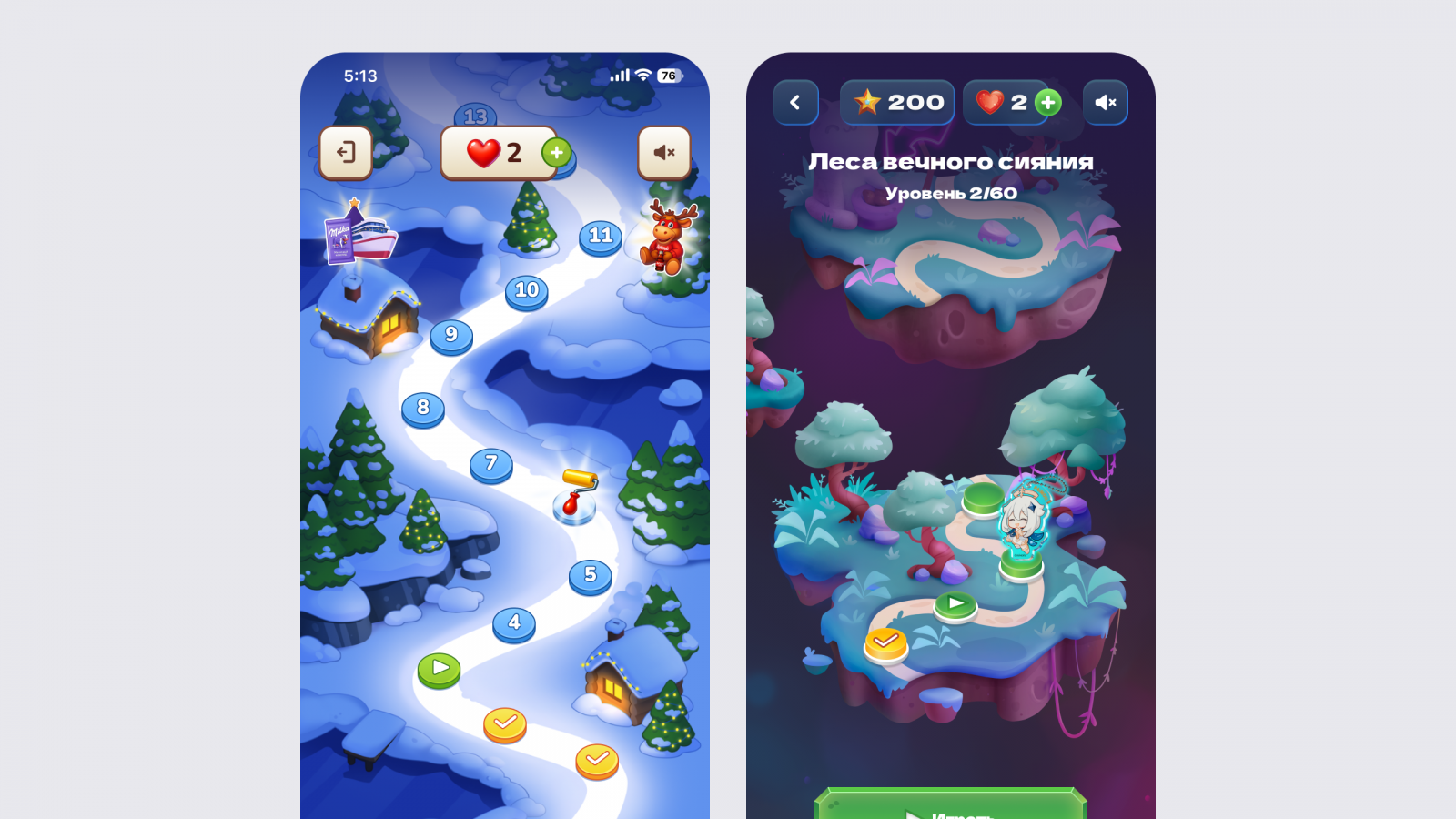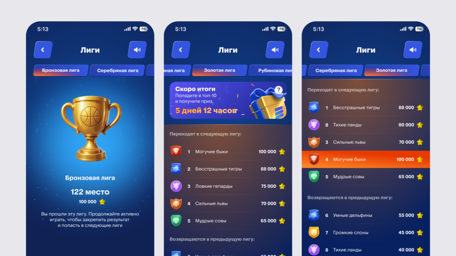 Хороший UX складывается из незаметных пользователю решений — именно они удерживают внимание. Вовлеченность создается не из «играй ради приза», а из ощущения прогресса: рейтинги, карта уровней, нативный онбординг, челленджи задают ритм игры и мотивируют возвращаться.