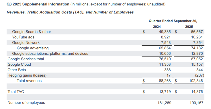 Так, общая выручка компании за квартал составила $102,35 млрд. Google Cloud остался одним из самых быстрорастущих сегментов Alphabet, чему способствовал растущий спрос со стороны предприятий на инфраструктуру и услуги аналитики данных на базе ИИ. Выручка подразделения составила $15,16 млрд. Реклама на YouTube принесла $10,26 млрд.