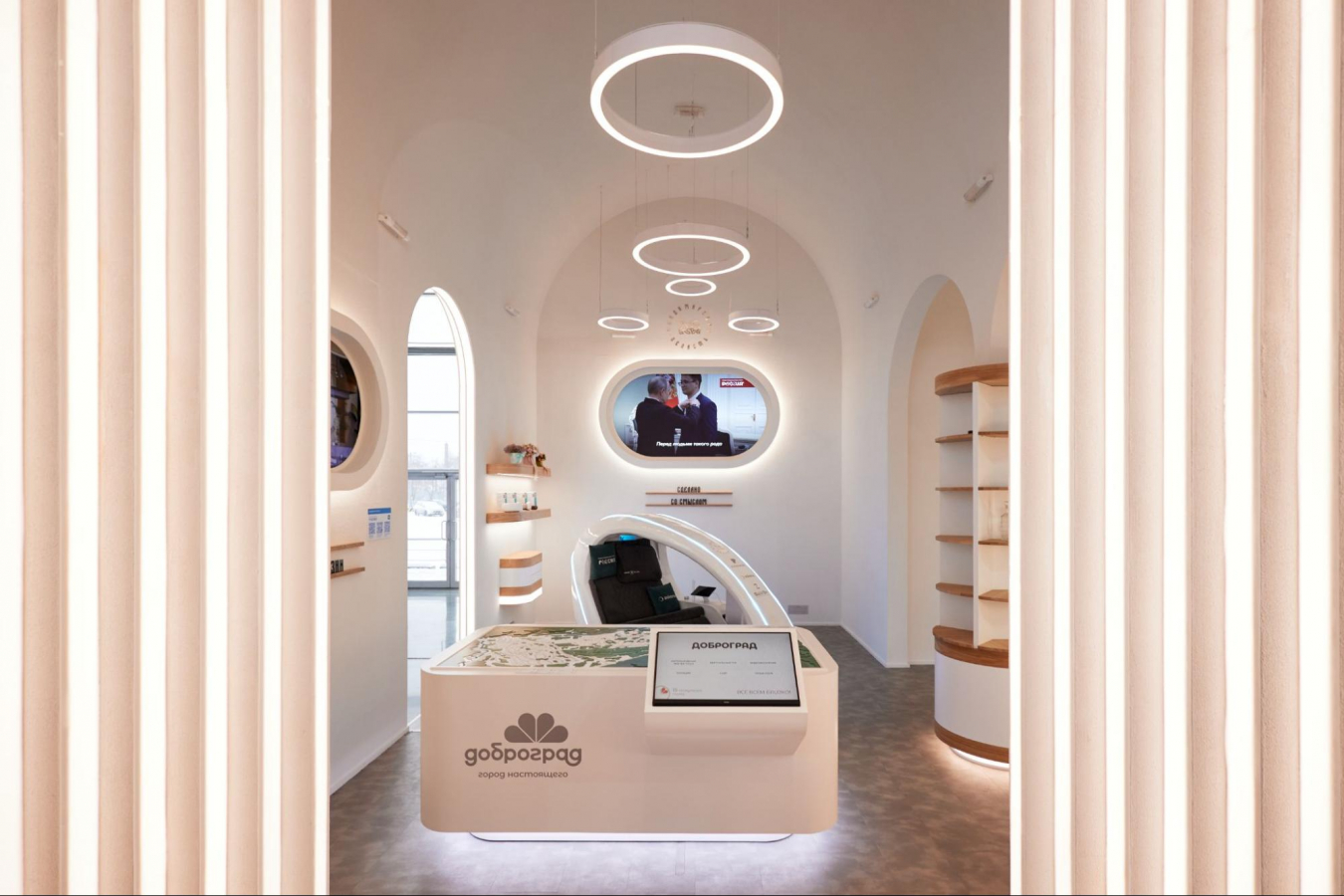 Хотелось также показать, что регион нацелен на будущее. Так родилась концепция стенда — белокаменный футуризм, в котором переплелись технологии и архитектурные традиции. Появились арки, которые напоминают Покрова на Нерли, при этом исполнены современно и лаконично. А также конструкции из стекла и современные цифровые носители.