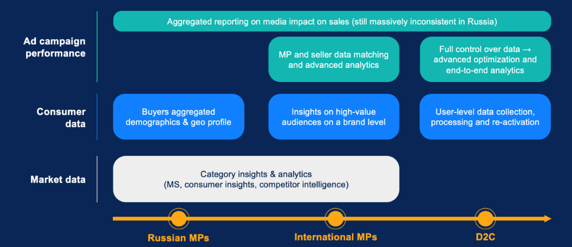 Безусловно, бренды рассчитывают на то, что в рамках отношений с маркетплейсами данные будут попадать и к ним. Но в действительности это не так. Даже данные о влиянии рекламных кампаний на заказы и выручку доступны не от всех маркетплейсов или доступны, но не на регулярной основе, с задержкой во времени. Маркетплейсы и агентства видят здесь точки роста и внедряют определённые инструменты для поддержки брендов.