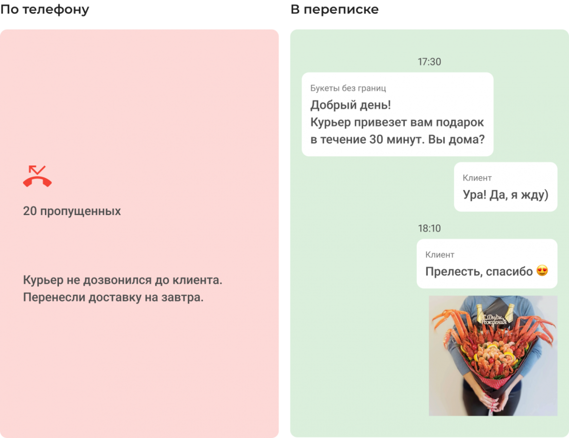 Оставить только телефон или только мессенджер не получится. Эффективная работа — это когда в арсенале продавца есть и телефон, и мессенджер. Эти два канала отлично дополняют друг друга. Хорошая новость в том, что организовать это несложно.