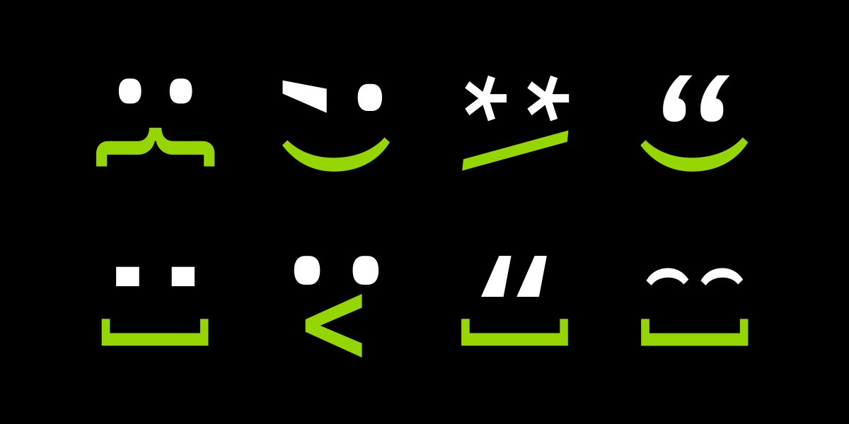 Яркая стилеобразующая графика развивается с помощью всевозможных комбинаций смайлов, также реализованных в программистской стилистике. Один из них «зарезервировали» исключительно для персонального использования основателем компании.