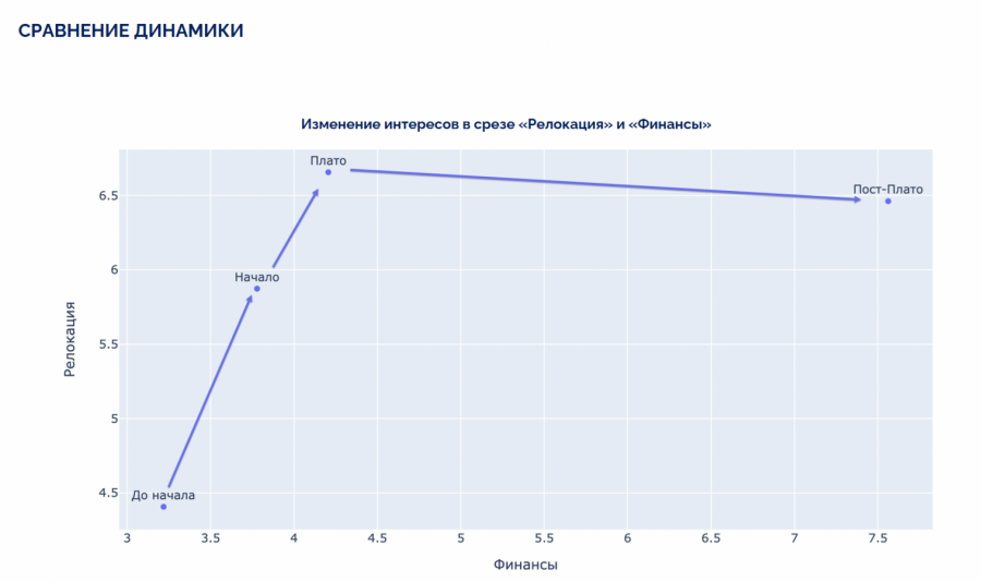 Стоит обратить внимание, что интерес к финансам продолжает активно расти в период пост-плато, а к релокации немного снизился.