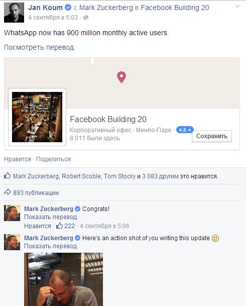Facebook купил WhatsApp в феврале 2014 года за 19 млрд долларов. Ранее глава Facebook Марк Цукерберг говорил, что он не стремится делать бизнес из WhatsApp, поскольку у мессенджера нет миллиардной аудитории. Однако сервис может преодолеть эту планку уже к концу 2015-го, прогнозирует Alcarez Equity Research. Первую попытку монетизации приложения соцсеть предприняла в мае, когда решила запустить B2C-рассылки.