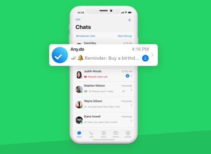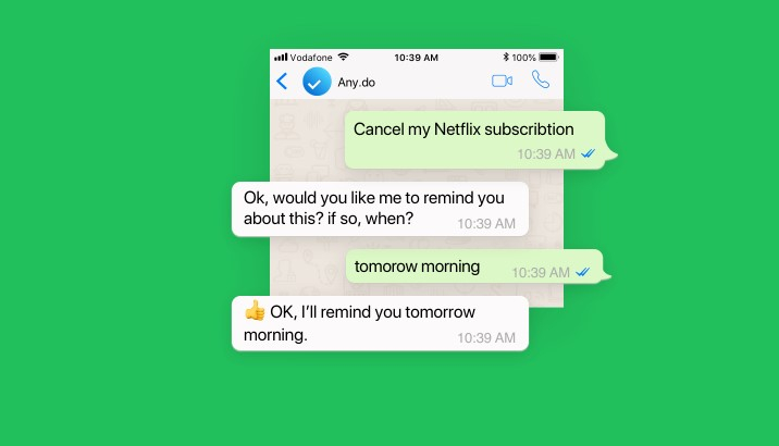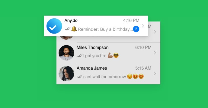 Напоминание в мессенджере устанавливается с помощью бота Any.do. Ему нужно отправить сообщение с указанием времени напоминания о событии или действии.