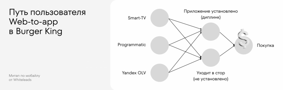 Есть web-трафик с медийной рекламой, который каким-то образом влияет на установку приложения. В случае с Programmatic и Yandex OLV по deeplink можно отследить промежуточные целевые действия, в случае со Smart-TV этого сделать нельзя.