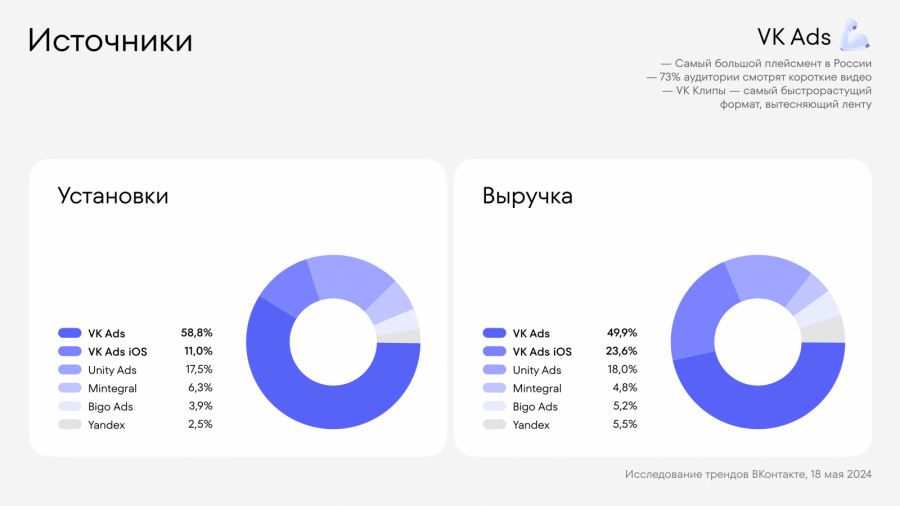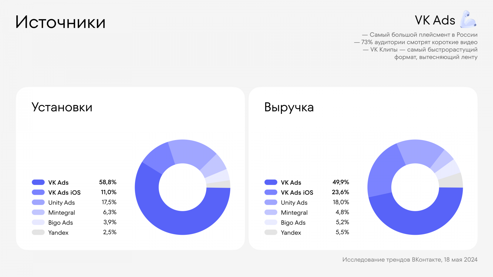 - мобильный инвентарь в России есть, причем без фрода, один из главных источников — VK Ads: в нем самая большая аудитория, которая дает не только клики, но и реальные конверсии;