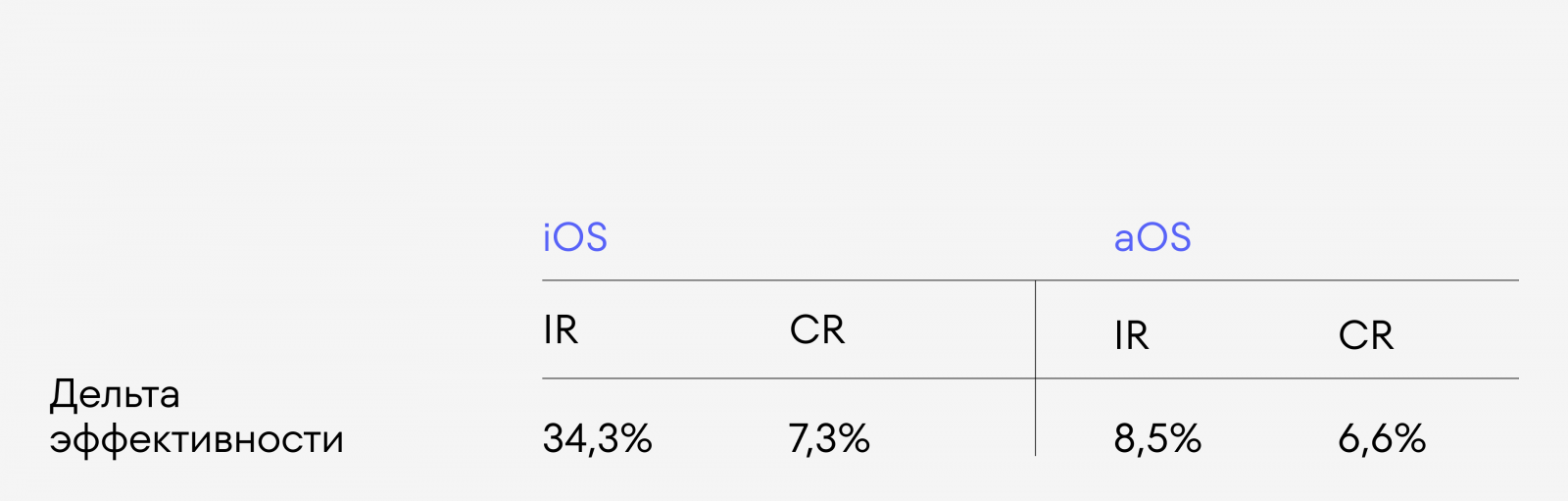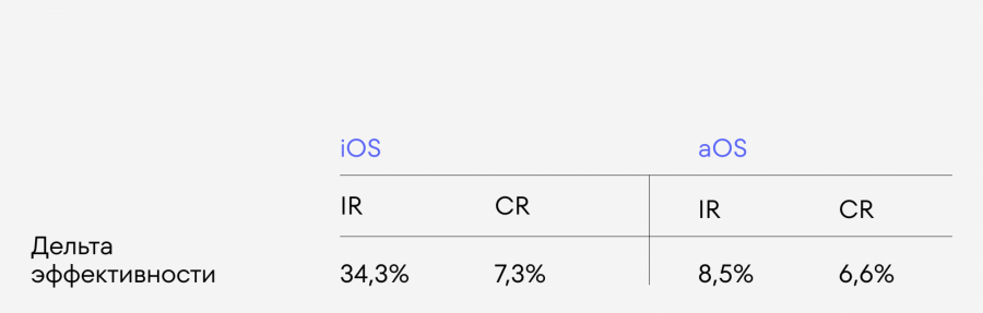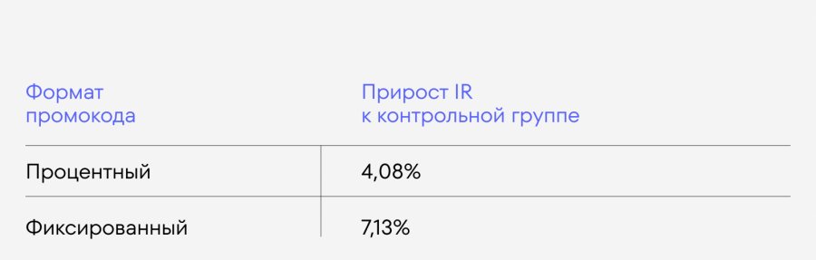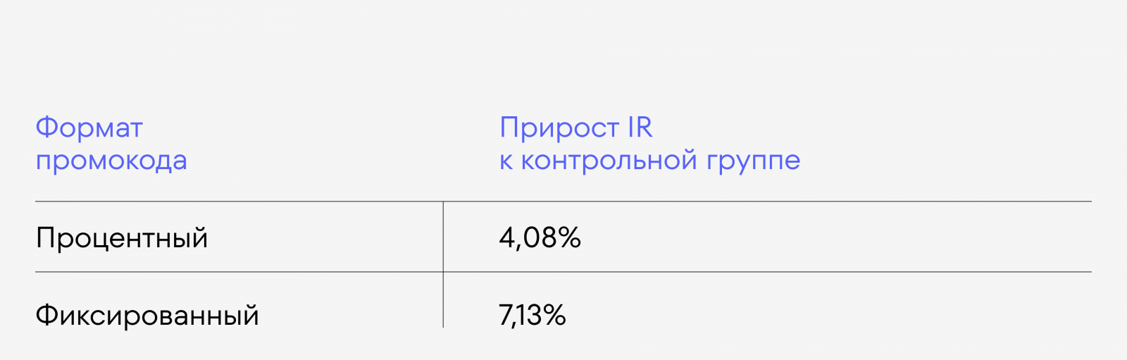 AB-тест показал, что прирост Install Rate к контрольной группе был выше у формата с фиксированной скидкой в рублях на 3,05 п.п.: