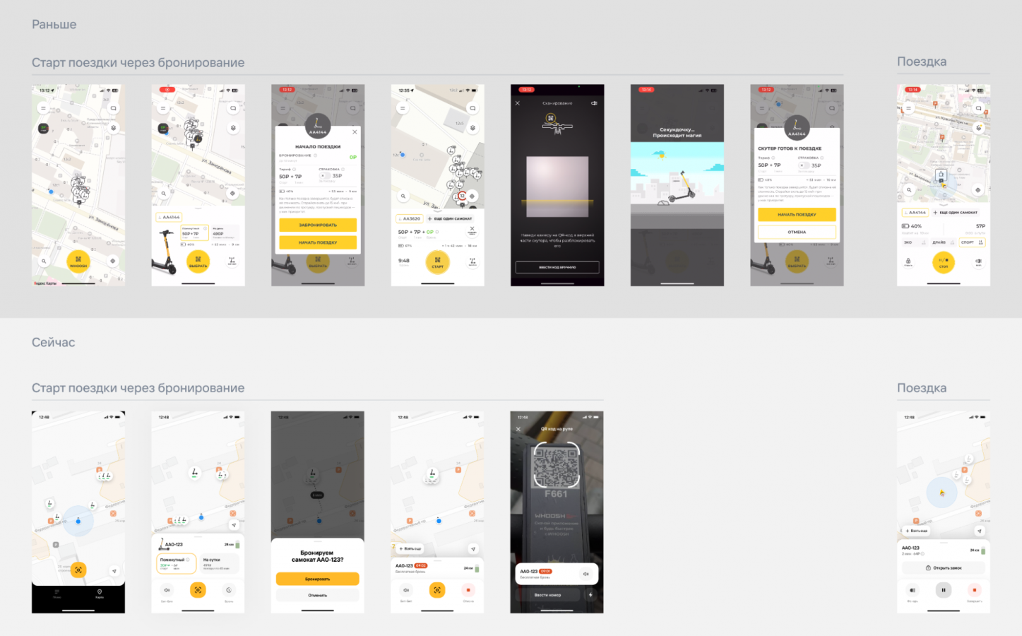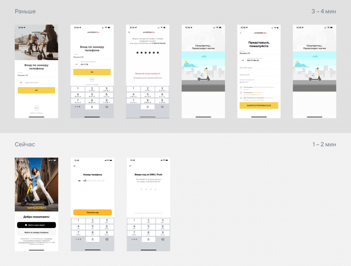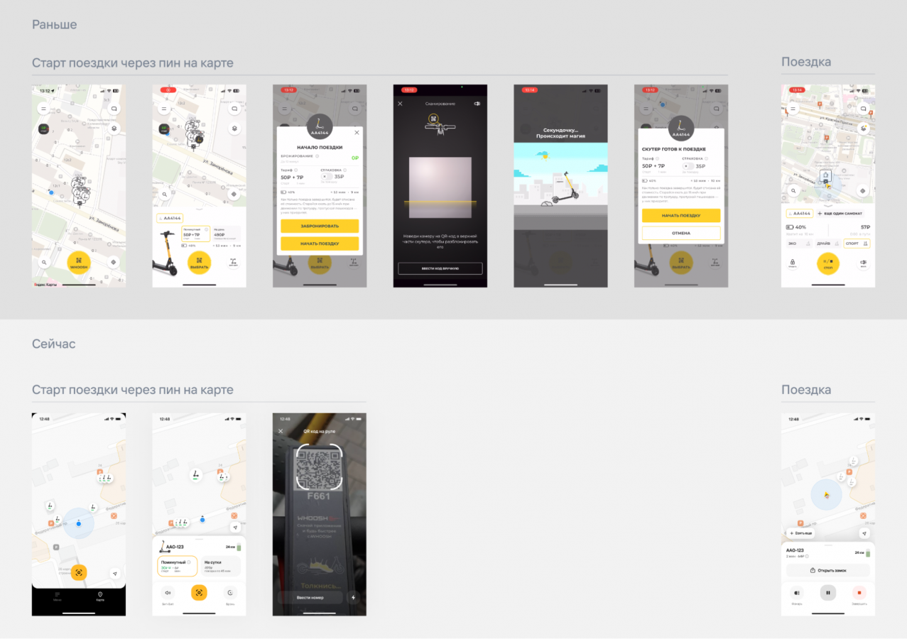 Смена айдентики пройдет поэтапно: приложение, сайт, социальные сети, флот электросамокатов и электровелосипедов. Whoosh работал над брендингом совместно с бренд-бюро Shuka. В планах компании — глубокие UX/UI-проработки остальных разделов приложения и масштабирование рестайлинга на другие каналы Whoosh.