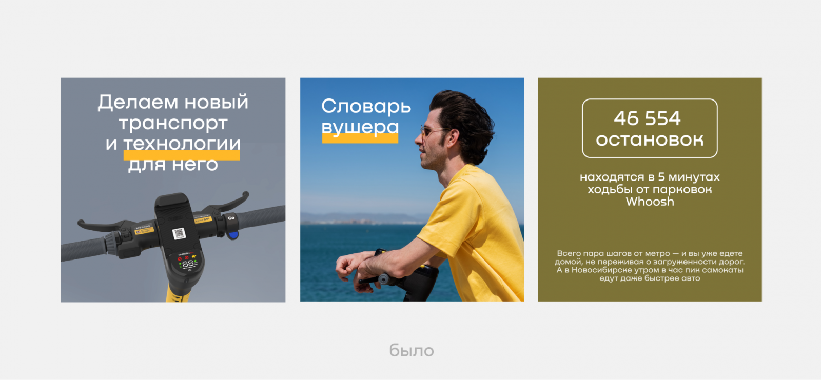 Новый цвет самокатов — это рестайлинг, выполненный в рамках обновления бренд-гайда Whoosh. Мы стремились усилить характер визуального стиля, добавить в него больше деталей и выразительности. В новом цветовом решении электросамокаты Whoosh еще легче узнать на парковке. Комфорт, технологии и стиль — это самокатный бизнес-класс без китча и «шума».