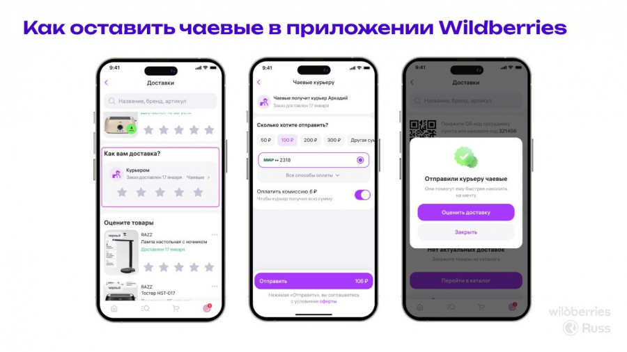 На первом этапе сервис будет доступен ограниченной группе пользователей, но позже его расширят на всех российских пользователей. Чаевые, оставленные пользователями, будут отправляться напрямую на «WB Кошелек» менеджера ПВЗ или курьера, отметила Ким.