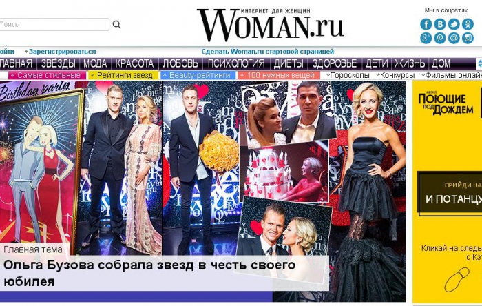 Woman.ru – один из крупнейших женских порталов Рунета, был основан в 1998 году как специализированный форум для женщин. В 2006 году Woman.ru был приобретен издательским домом «ТОП-50», которому принадлежат журналы «Собака.Ru», «Time Out Москва», «Time Out Петербург», а также интернет-проекты TimeOut.ru и Sobaka.Ru.