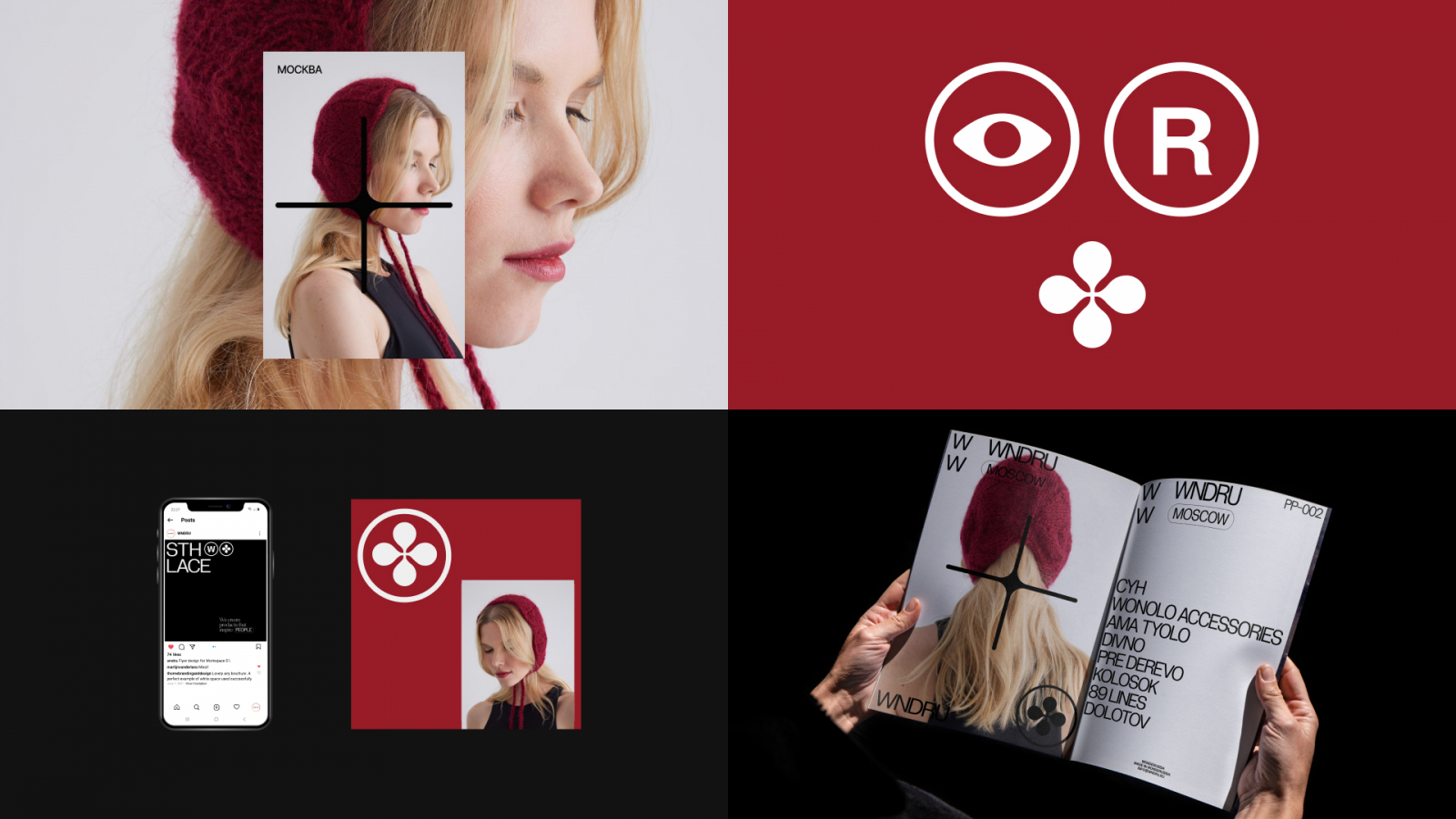 Один из центральных объектов внимания — анимированный логотип, в котором леттеринг соединился с перетекающими друг в друга орнаментами сказочных знаков. Текстовое написание WNDRU выглядит обычным и даже строгим, а графическая часть, состоящая из сменяющихся знаков, иллюстрирует тематические направления (музыка, мода, фотография и другие).