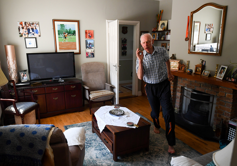 На снимке представлен 87-летний Пэт Нортон — бывший мастер десятиборья, который продолжил поддерживать активный образ жизни в разгар пандемии.