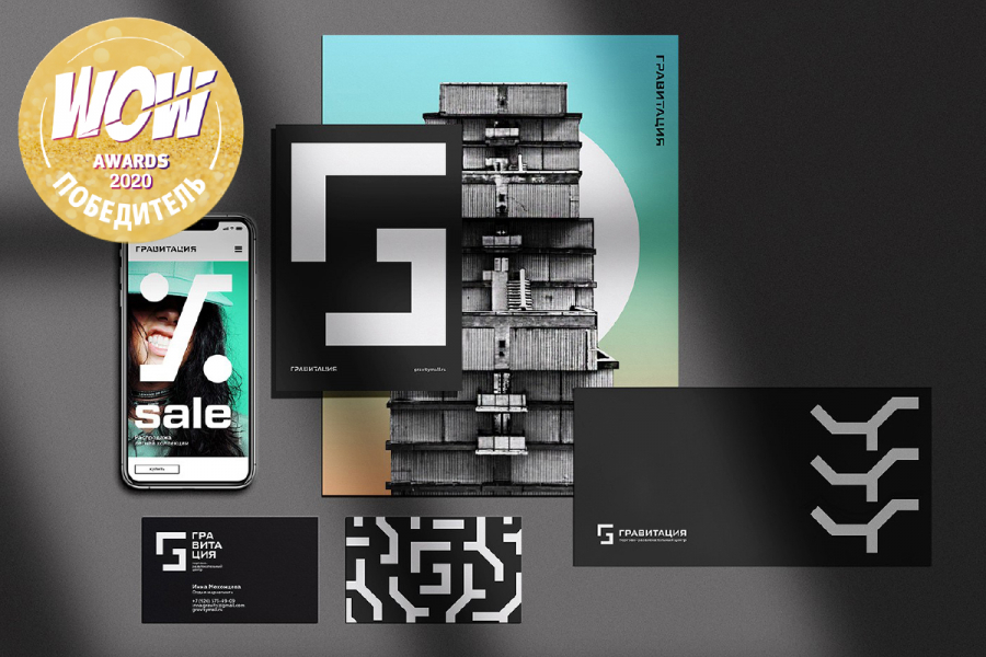 Космическая айдентика для ТРЦ «Гравитация». Заказчик — группа «Ташир», исполнитель — The Clients.