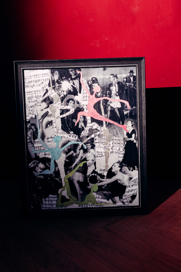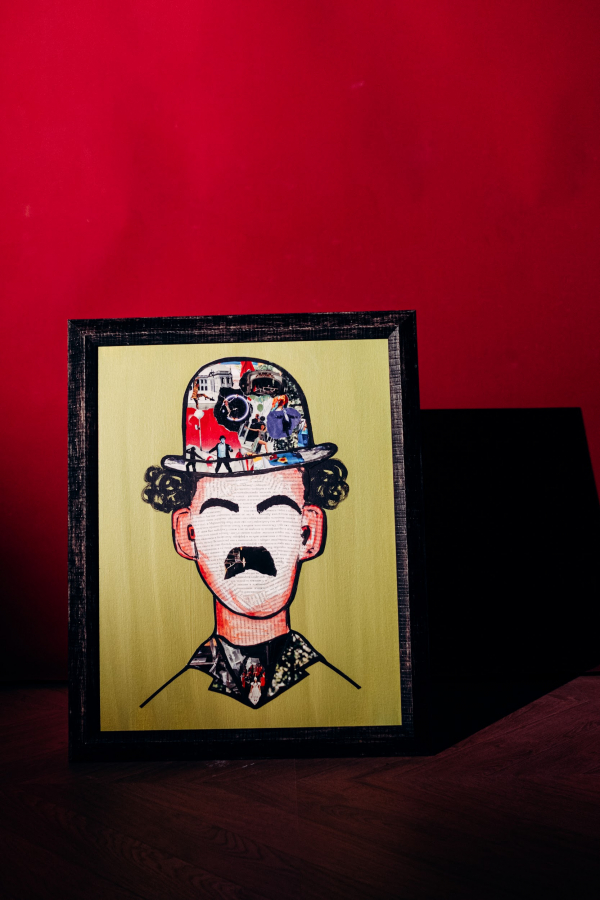 Живописи посвящена картина с девушкой, чьё лицо наполовину растеклось и объединилось с коллажом. Театру — работа с силуэтом Чарли Чаплина и словами: «Спектакль окончен», «Живи свою главную роль». Литературе — фраза «Страстная натура наслаждаться жизнью и видеть время». Музыке — надпись «Без музыки жизнь была бы заблуждением».