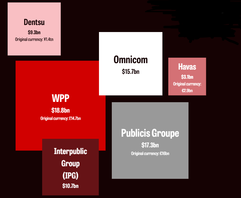 По данным Campaign, общая выручка «большой шестерки» в 2024 году выглядит так: