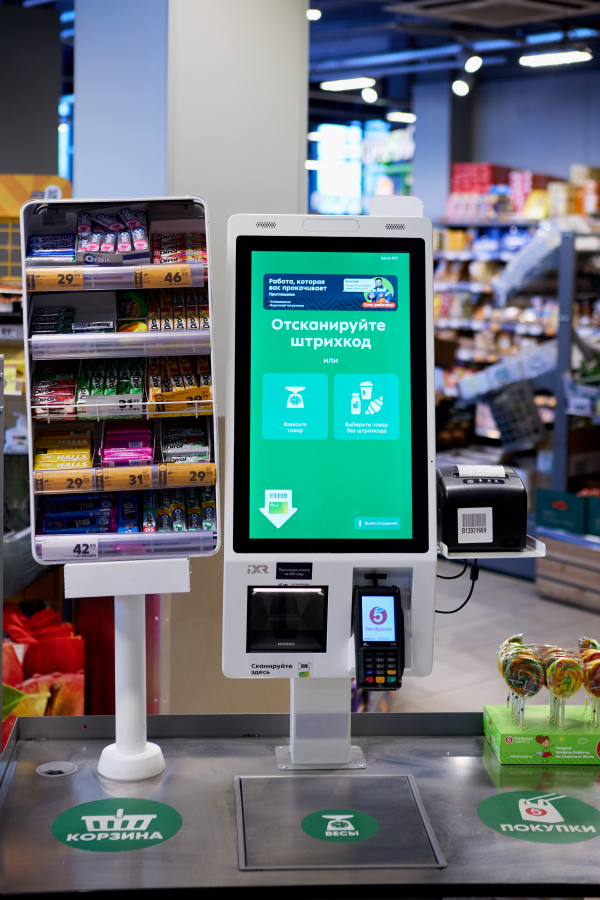 По данным X5 Media, на КСО приходится около 42% трафика сети «Пятёрочка». Чаще всего ими пользуются молодые покупатели до 29 лет, взрослые в возрасте от 41 до 58 лет, а также родители с детьми до трех лет. На сегодняшний день реклама на главном экране касс доступна на 50 536 устройствах в более чем 19 тыс. магазинов «Пятёрочка». Ранее этот формат появился в супермаркетах «Перекрёсток».
