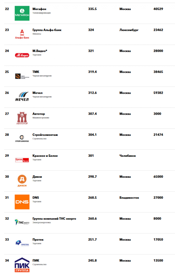 Общая рублевая выручка 200 частных компаний за год увеличилась на 22,2%, до 43,7 трлн рублей. Из 200 участников рейтинга лишь 19 показали отрицательный результат по сравнению с прошлым годом. Самый большой рост, в среднем на 60,2%, как и прошлом году, продемонстрировали угольные компании. За ними следуют строители (рост на 40,8%), лесная промышленность (+36,8%), ИТ (+24%), машиностроение (+22,2%), транспорт и химическая промышленность (+21,5%), торговля (+19,8%), нефтехимия (+16,6%), металлургия (+16%), финансы (+15,9%), агромпром (+15,3%), фармацевтика (+14,8%), электроэнергетика (+5,8%), телекоммуникации (+5,3%), а также туризм (+3,7%).