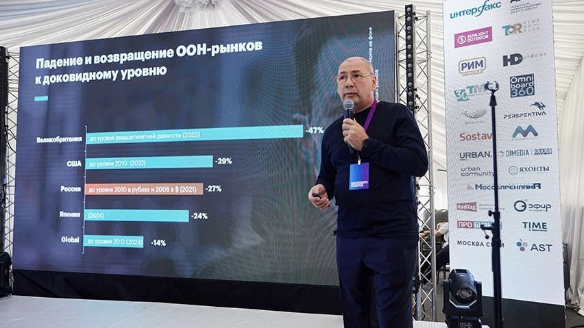 Российский рынок наружной рекламы. Продолжилась деловая часть выступлением отечественных специалистов. Директор сервиса бронирования наружной рекламы All-billboards.ru Андрей Байдужий в авторской презентации специально для конгресса рассказал, как выглядит российский OOH на фоне крупнейших рынков, каков расклад сил в российском prDOOH, а также поделился прогнозами на будущее. Об изменениях в топ-350 рекламодателей и появлении трёх новых категорий брендов: локализованные, которые ранее были международными, новые локальные и новые международные, рассказал генеральный директор SA Media Group — генерального партнёра конгресса — Дмитрий Казаков. По его данным, доля старых международных компаний сократилась с 47,5% в 2021 году до 3,7% в 2023-м, а старых локальных выросла с 48,1% до 74,9%. В 2024 году эксперт прогнозирует резкий рост доли новых международных и локальных брендов.