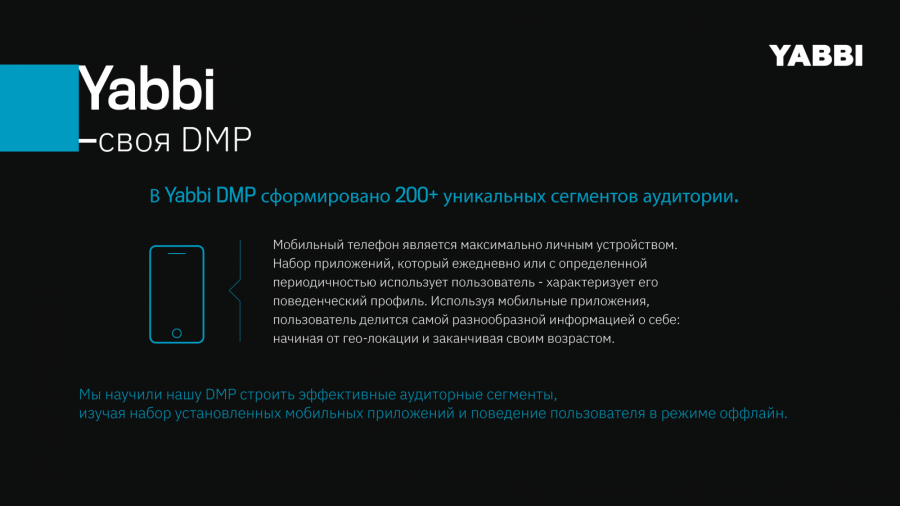 YABBI — это DSP, DMP, antifraud, система мониторинга репутации и эмоционального фона мобильных приложений.