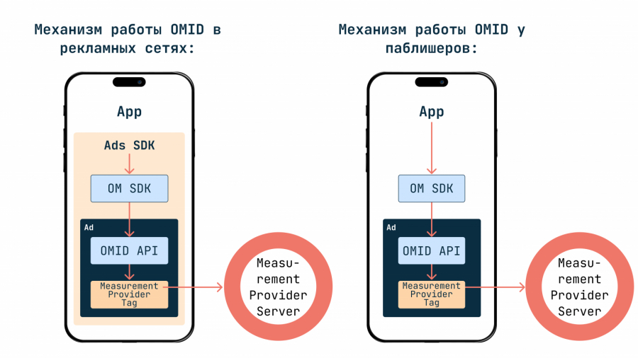 OMID — специальный интерфейс приложения (API), который используется в связке с OM SDK. Верификаторы ставят скрипты в рекламный креатив, чтобы собирать информацию о метриках и передавать их на свои серверы. OMID создаёт стыковку между приложением и верификатором, позволяя собирать эти данные по стандартному шаблону.