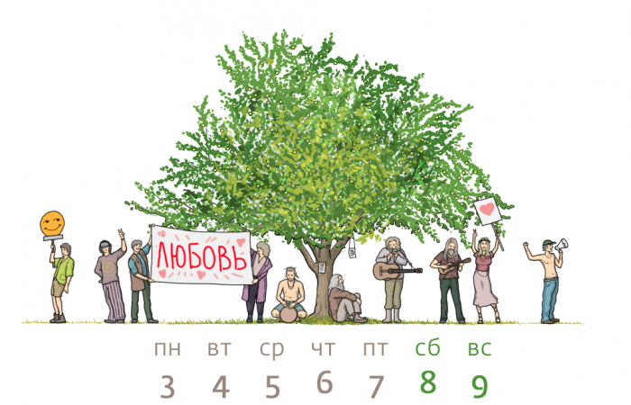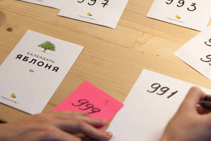 Агентство визуальных коммуникаций «Инфографика» представило календарь на следующий год, получивший название «Яблоня 2015». Главным исполнителем стал художник-иллюстратор Максим Дегтерев. «На острие» концепции креаторы решили взять образ яблони, который знаком русским людям с детства и встречается во многих литературных произведениях.