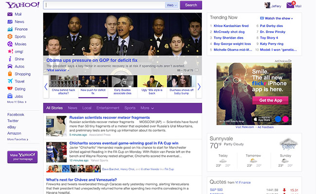 Кроме того, добавлена лента новостей, которая будет подгружаться при прокрутке страницы, а также интеграция с социальными сетями. Так, подключив к Yahoo! аккаунт Facebook, пользователи смогут видеть новости друзей. Кроме того, обновленная главная страница оптимизирована для смартфонов и планшетов.