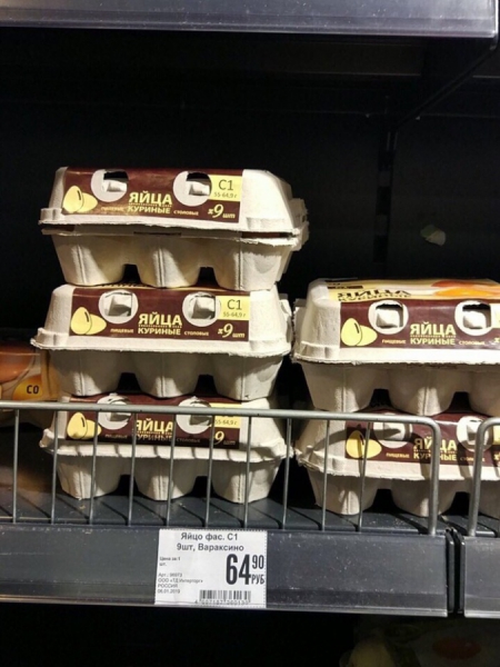 В российских магазинах начали продавать куриные яйца в новой упаковке — по 9 штук, а не по 10, как привыкли видеть покупатели. Это заметили пользователи Pikabu и поделились фотографиями новых упаковок.