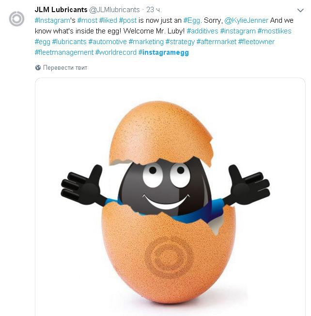 Кайли Дженнер, чей предыдущий мировой рекорд по «лайкам» побило яйцо, решила ему «отомстить». Она сняла видео, в котором разбила яйцо. «Вот что делает Кайли со своими конкурентами», — написала она.